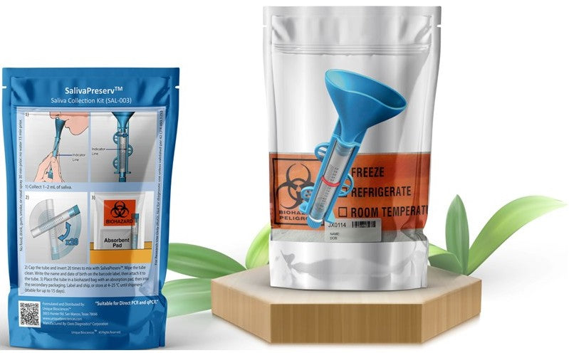 SalivaPreserv™ is a saliva collection device sold by Unique Biosciences™, featuring our proprietary DNA stabilization buffer pre-coated inside the tube. Designed with advanced molecular stabilization chemistry, it preserves microbial DNA integrity across temperatures from -20°C to 35°C. This eliminates the need for cold-chain transport while ensuring the stability, safety, and accuracy of saliva-based diagnostics.
